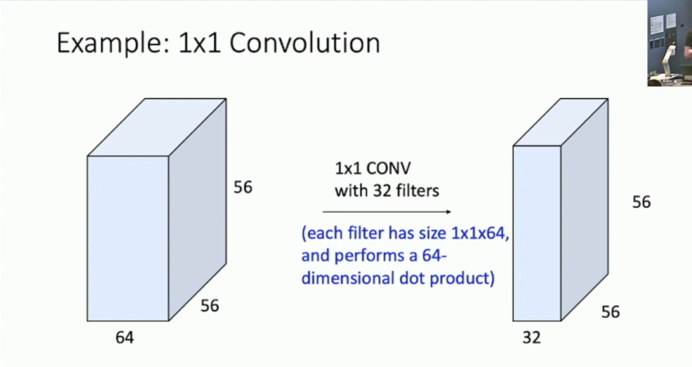 그러므로 1*1 CONV은 Output의 행과 열을 변화시키지 않고 depth를 수정할때 쓰입니다.