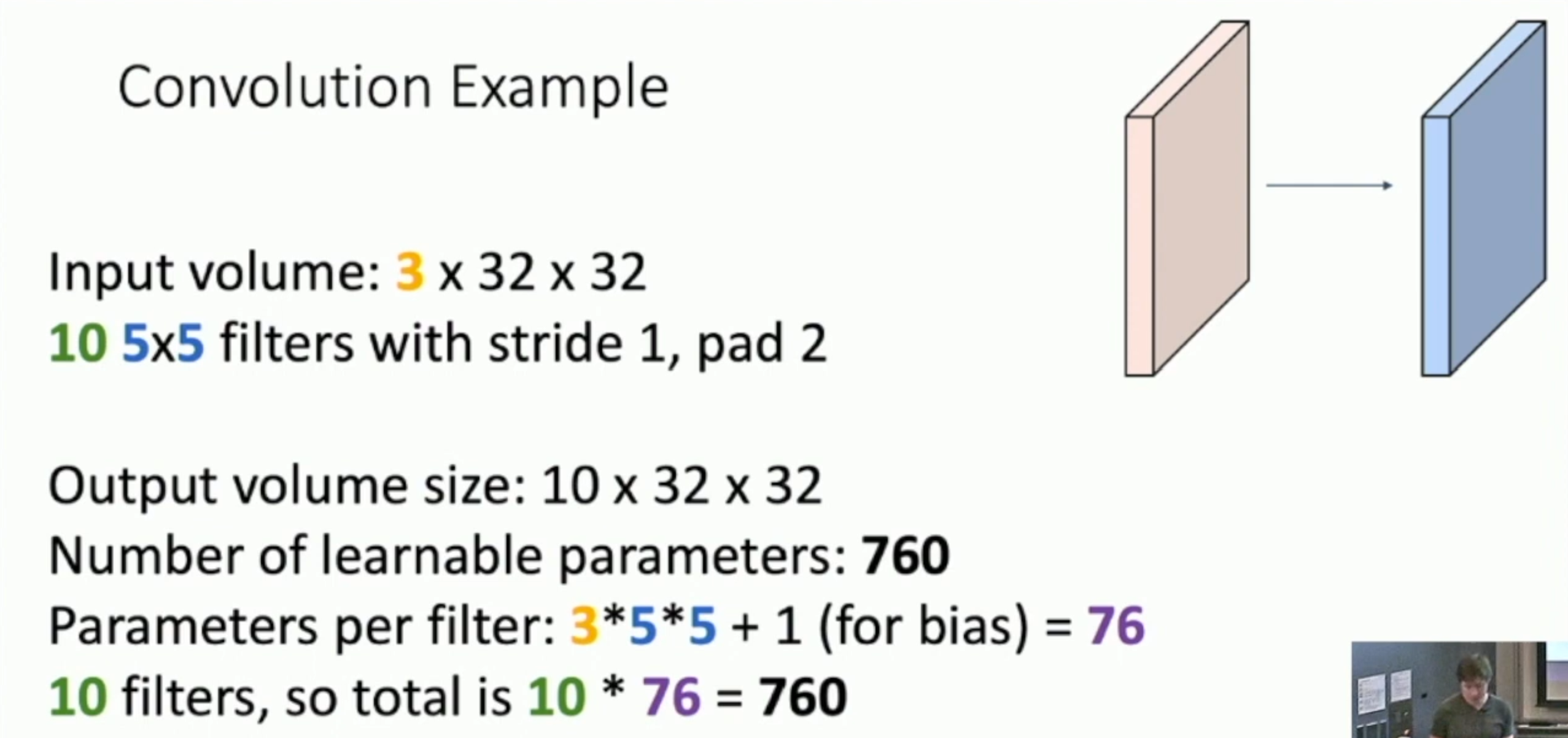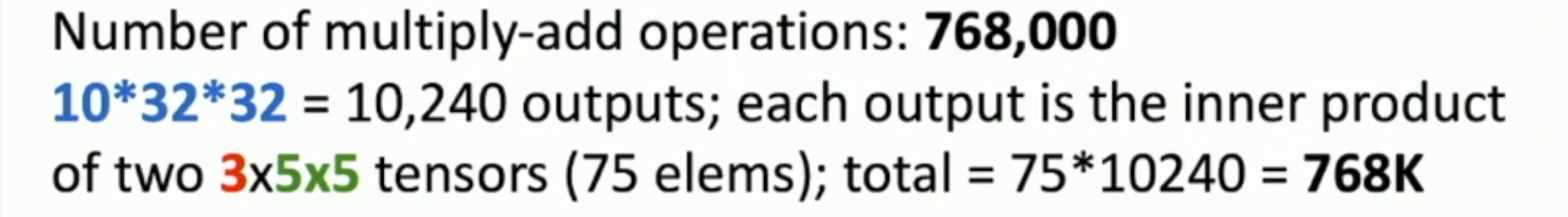 추가 예시) output volume size, Number of learnable parameters and multiply-add operations